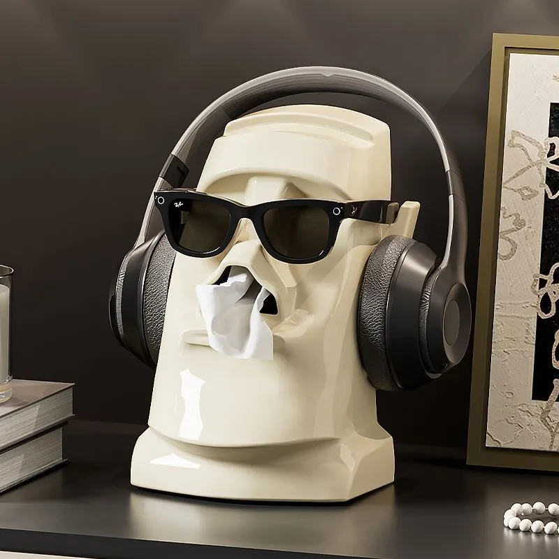 Multi-purpose Tissue Box – Funny Living Room Decor with Glasses & Headphone Holder